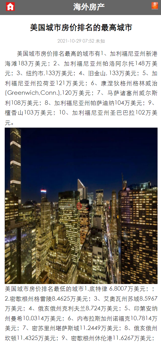 一个关于海外房产资讯平台建设,针对海外房产人群建立不同栏目